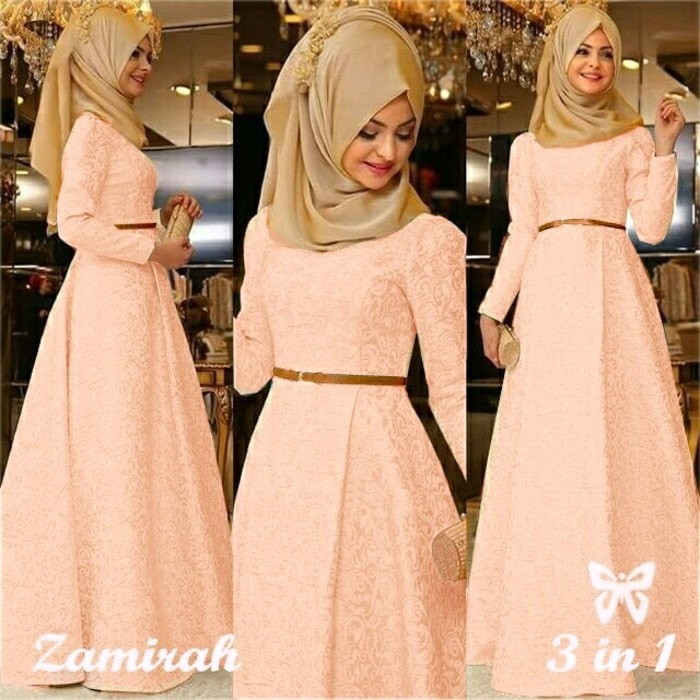 Baju Pesta Muslim Gamis Pesta Modern Party Dress Zamrah Warna Peach