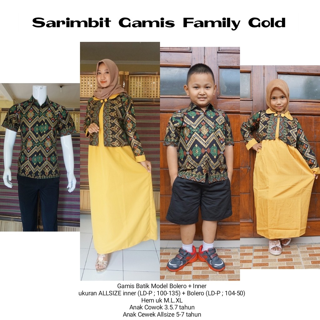 Baju Couple Batik Sarimbit Gamis Batik Keluarga Warna Gold Kuning