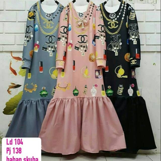 Gamis dress terbaru 2019 chanel maxy kategori. Order sekarang sms.