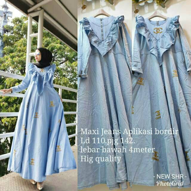 This is article about gamis dress terbaru 2019 chanel maxy. Jual new chanel maxy gamis longdress terbaru original jeans premium murah dengan harga rp165000 dari toko online nurul triyadi kota surakarta.